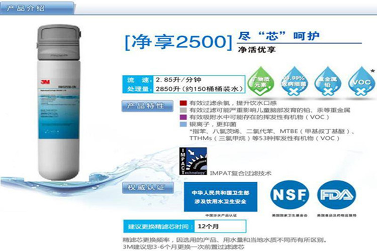 拥有强大的液体过滤核心技术平台和超过90年的液体过滤行验,是世界上业务横跨工业、医疗、食品饮料和饮用水行业的液体过滤公司。在水过滤领域,3M覆盖了餐饮用水处理、电器用水处理和家用净水三大业务。众多国际知名连锁餐厅、可乐公司、瓶装水公司,以及世界上超过90%的双开门冰箱其内置的制冰及饮水系统,均采用了3M饮用水过滤系统。